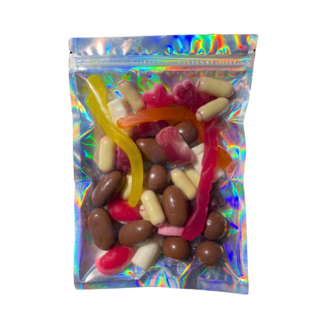 Natural Confectionary Lolly Ingredients: Glucose Syrup (from Wheat and Corn), Cane Sugar, Thickener (Acid Modified Wheat Starch), Gelatine, Food Acid (Citric), Fruit Juice Concentrate, Natural Flavours, Natural Food Colours (Anthocyanins, Black Carrot, Grape Skin Extract, Spirulina, Paprika Oleoresin Turmeric), Glazing Agent (Vegetable Oil, Carnauba Wax).