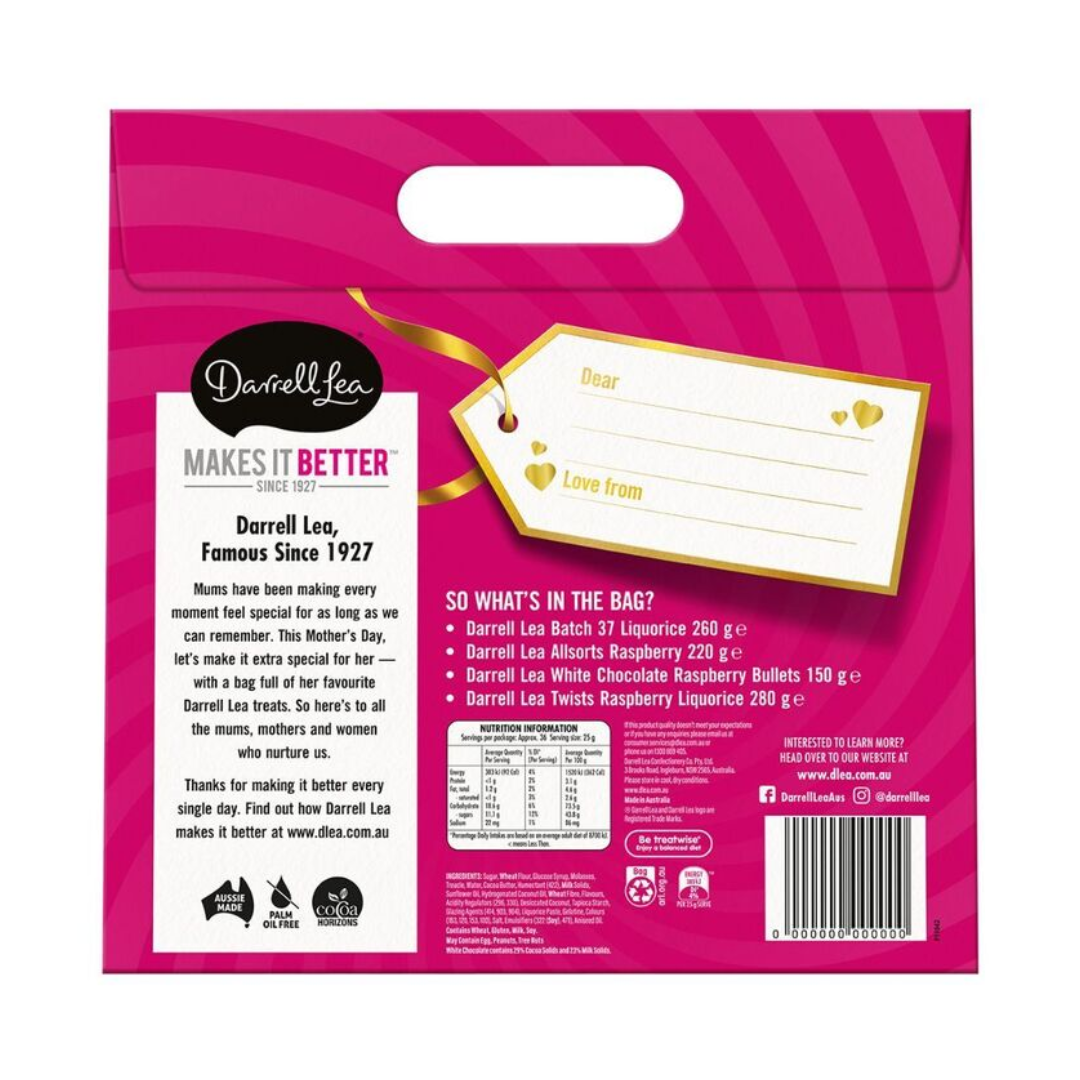 Celebrate Mother's Day with Darrell Lea! The Darrell Lea Mother's Day Bag is a special collection of her favourite Darrell Lea treats, crafted for mums, mothers and women. Brimming with premium, Aussie-made confections, this indulgent assortment is the perfect way to say thank you for making every moment feel special.