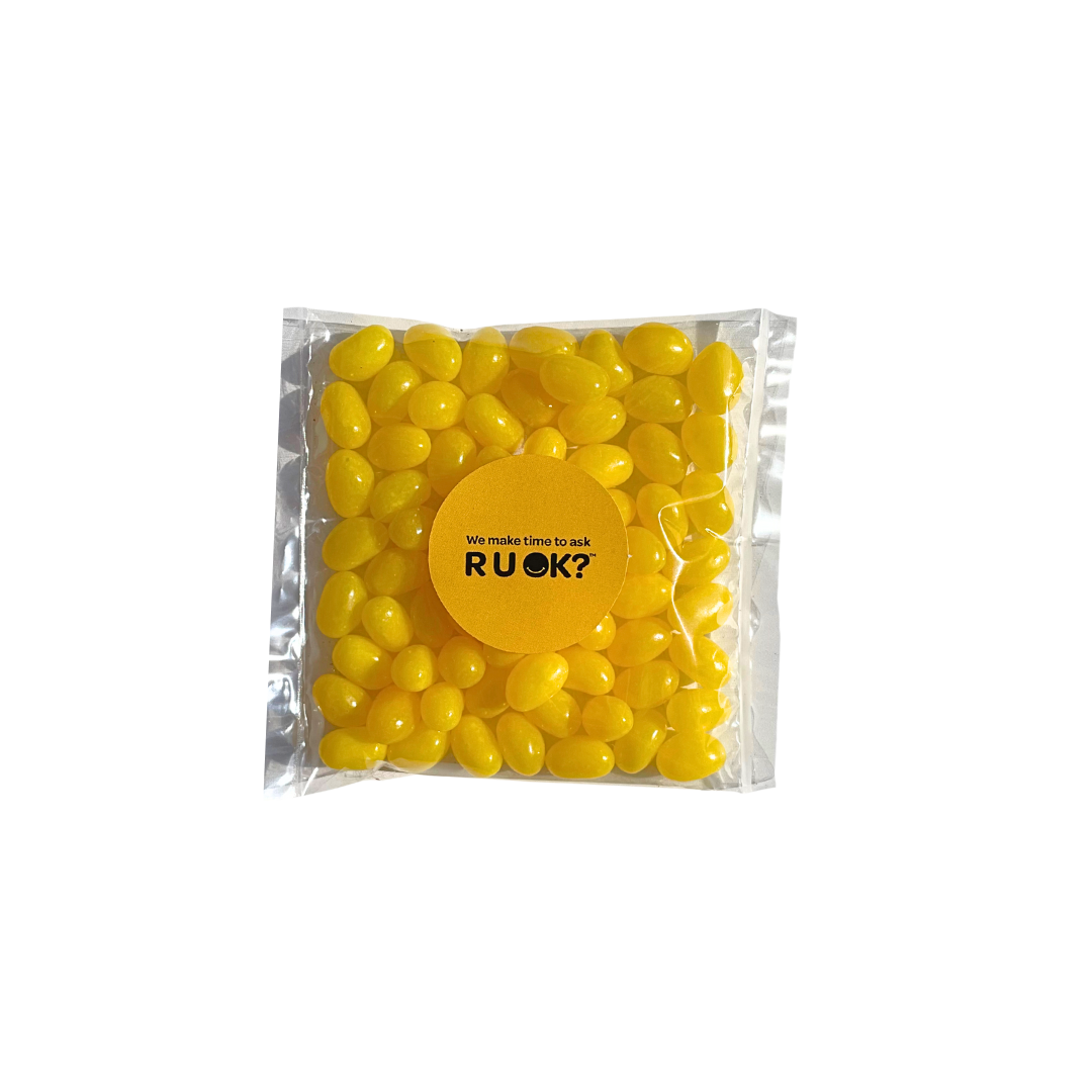 Brighten someone’s day with this vibrant bag of yellow jelly beans, specially packed for R U OK? Day. Each 75g bag is full of sweet, sunshine-coloured treats designed to spark smiles and start meaningful conversations.