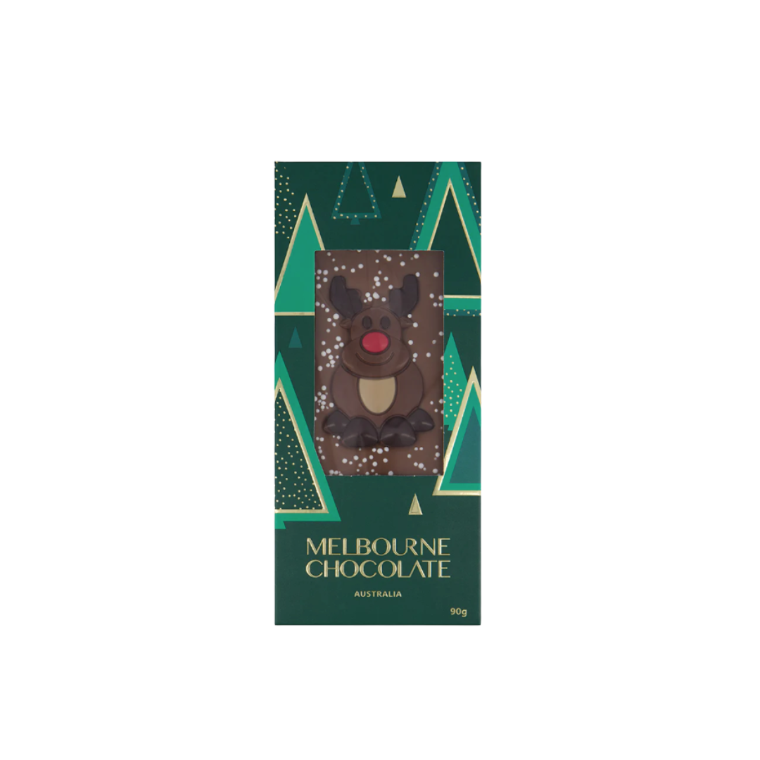 Bring a touch of festive cheer to your chocolate stash with the Rudolph Milk Chocolate Block 90g from the Melbourne Chocolate Company, now at Sweet As. Made in Melbourne using smooth, creamy milk chocolate, this fun and charming Christmas block is perfect for gifting, snacking or adding to hampers and stockings.